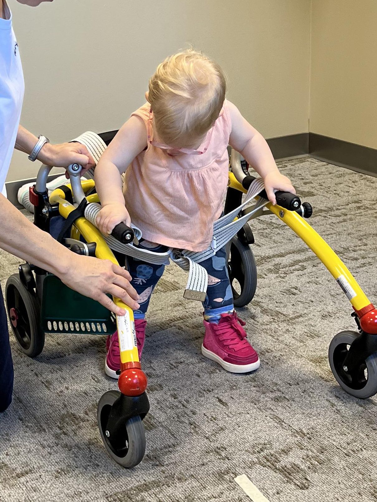 Parker doesn’t care about any of that though. Her current focus is on walking. She had a physical therapy session two days before we left Kansas, and they got her into a modified walker, and she. took. off. She was not playing around. The inch worming stuff she was using for crawling is now for the birds, and walking means she got a dose of freedom nobody was going to take from her.